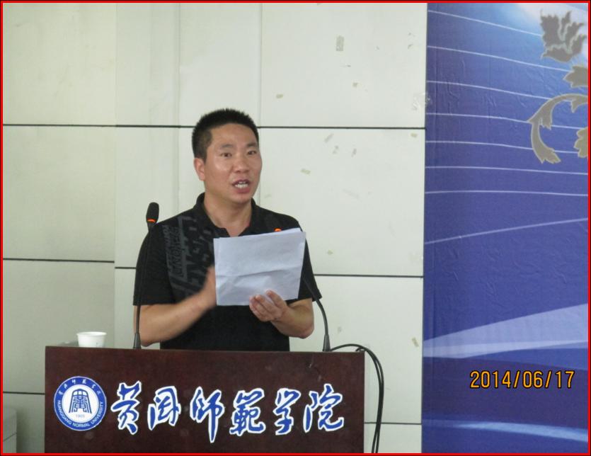 随后,黄冈中学优秀青年语文教师胡祥学应邀作了一场精彩深刻的教育实习报告。在报告中,胡老师结合自己多年中学语文教育教学经验和班主任工作经历,分别从实习心态、教师素养、学会听课、充分备课以及写教案、教学反思和师生沟通七个方面进行了详略得当的讲解。他还结合语文新课标的要求,语重心长地告诉同学们,作为一名合格的语文教师,要真诚地与学生交流,突出学生的主体地位,用课堂来征服学生,用三尺讲台铸人生辉煌!