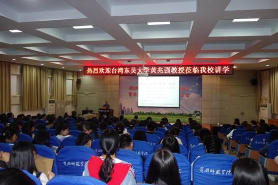 黄兆强教授从文化的内涵、阅读在文化中的重要性、如何读书、阅读的乐趣等方面展开。黄兆强教授重点阐释了“如何读书”:读书要“六到”,即眼到、耳到、口到、心到、手到、足到;读书要精读与略读并举,对于经典作品要精读,对前人的研究成果要略读;读书的步骤与方法,钱穆先生论读书三部曲,即读前构思――读时对照、比较――读后掩卷深思;读书要看整本书,不能只抱个题目去找材料等。讲座结束后,黄兆强教授就学生关心的文化与教育热点问题进行了愉快而热烈的互动交流。