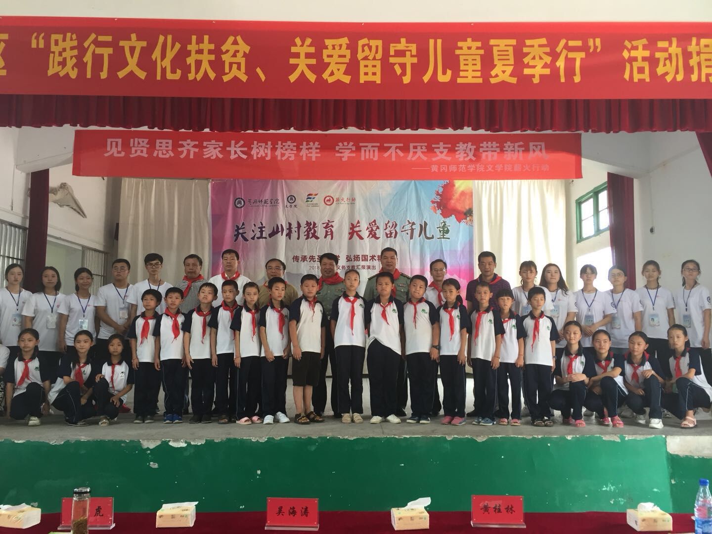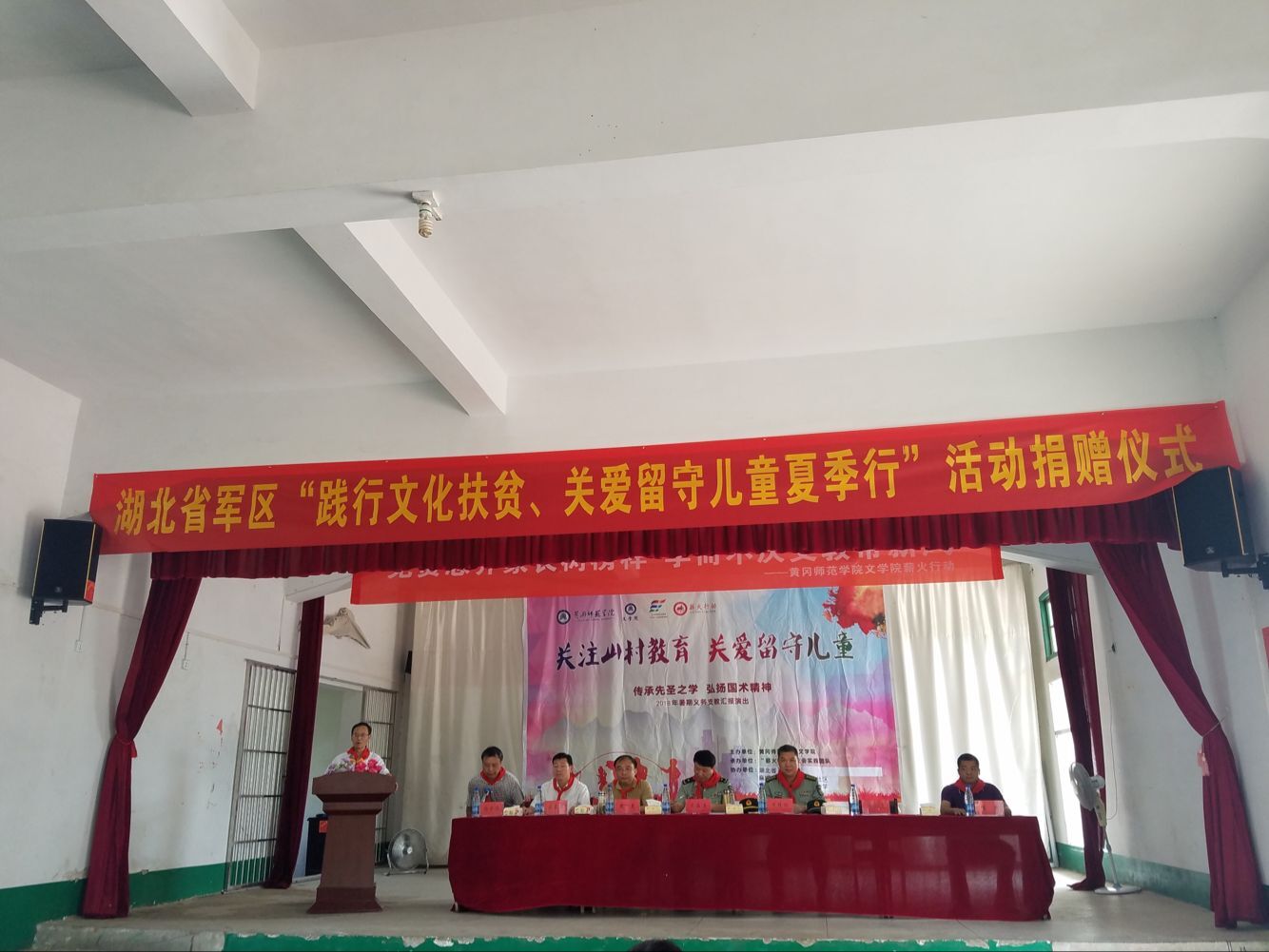 据悉,湖北省军区结合“薪火”汇报演出组织开展的“践行文化扶贫、关爱留守儿童夏季行”活动同时举行,省军区官兵为乘马岗中学捐赠了一套音响设备,为113名留守儿童捐赠了爱心书包和学习用品。