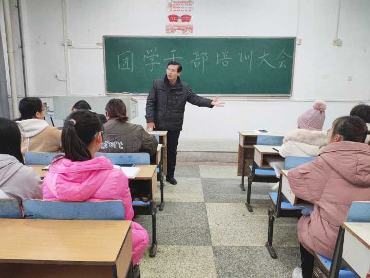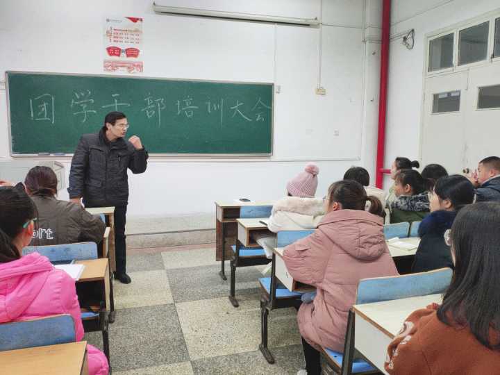 1213日下午四点半,我院在博学楼104教室举行团学干部培训大会,团委书记陈浩老师出席会议,团委副书记刘旨意及2018级全体团支书参加了此次会议。会议由院学生会团委组织部部长陈爽主持。