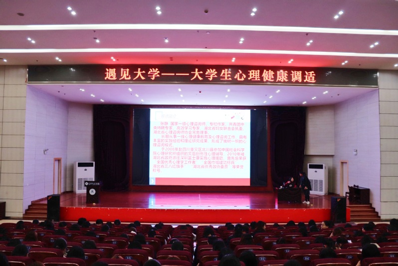 3月27日晚,伟德国际victor1946在南区厚德楼学术交流中心举办了“遇见大学——大学生心理健康调适”主题心理辅导讲座。院党总支副书记王艳艳老师、辅导员魏兰玉老师、院团委邓军老师和2017、2018级全体学生参加此次讲座。