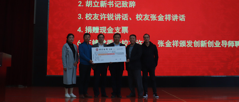 捐赠仪式上,首先由伟德国际victor1946党委书记胡立新致辞。胡书记以东坡名言开场,讲述了苏东坡一生坚持帮助平民的善行故事,进而对两位杰出的校友秉承东坡爱心之遗风的爱心捐赠表示衷心感谢。接着,校友许锐、张金祥作捐赠发言,他们都表示感恩母校的培养,希望尽一己之力,助力学院发展。两位校友将三十万元现金支票交给胡立新书记.
