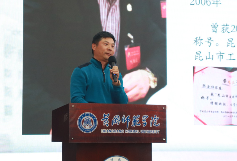 校友张金祥以《从挫折中放飞梦想》为主题,用“梦想从求知中放飞,希望自就业启航”作为开场语,他分享了自身创业经历,谈及他从初中老师到电视台新闻记者再到商人的三次转变,在挫折中仍坚强不倒,以此激励同学们要敢于挑战自己,发现机遇,在挫折中成长。最后他借用毛泽东的“世界是你们的,也是我们的,但归结到底是你们的时代”来结尾,鼓励同学们珍惜大学时光,努力提升自己,创造属于自己的辉煌。在提问环节,在场同学踊跃发言,两位校友对问题一一作出细致的解答。最后,胡立新充分肯定了两位校友的精彩讲座,并提出希望在座的学生能够从两位校友的讲座中学习两位校友的奋斗和奉献精神,提升自己的思想道德水平,增业责任感、勇于探究。