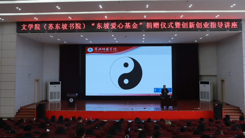 本次活动分为“东坡爱心基金”捐赠仪式、东坡大讲堂之创新创业指导讲座两部分。