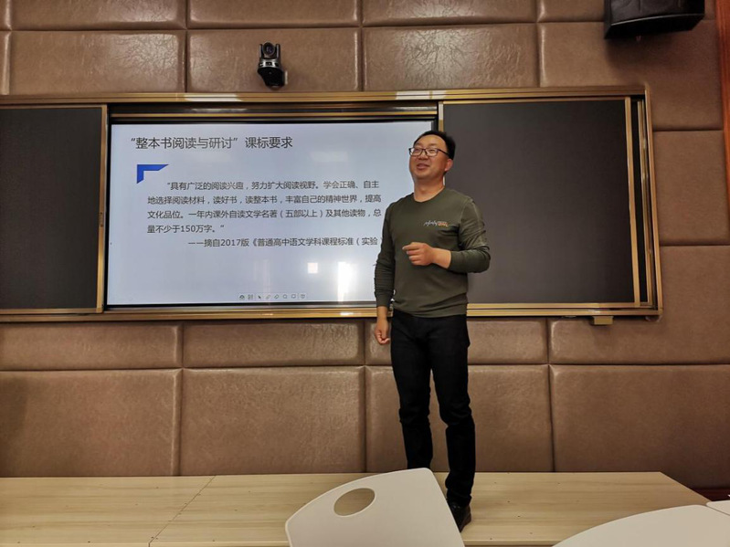 讲座中,胡老师结合自身对“整本书阅读”的理解与多年实践,以“高中语文整本书阅读教学实践探究”课题结题汇报的方式,不仅向同学们展示了一线教师如何做课题研究,也让同学们对如何实践与探索整本书阅读有了更深的体会。在谈到为什么要做整本书阅读的课题时,胡老师结合高中部编本教材编写、教育现状调研及相关专家对其概念的界定和研究,认为整本书阅读是响应了新课标、新教材以及语文学习对整本书阅读的要求。对于如何做好这个课题,胡老师从 “定目标,做计划”“活动促,典型推”“因校施策,因材施教” 三个方面展开,并结合部编教材整本书阅读实验学校开展的教学教研活动,为同学们展示了当地优秀教师开展整本书阅读的教学案例。在互动交流环节,胡老师在谈到具体应该怎样落实整本书阅读时,认为在教学中要紧密联系 “教师引读”“师生共读”“成果共享”这三种方法,保证学生能够沉下心来进行整本书阅读。关于如何检测和评价学生整本书阅读的效果,胡老师结合近几年江苏浙江福建高考对整本书阅读的命题,与同学们一起进行了深入探讨。