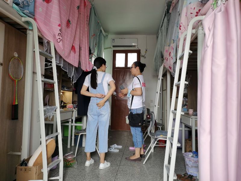 在看望毕业生的同时,学院还安排辅导员老师协同本院宿舍文化部同学开展节假日例行的宿舍安全隐患排查,对端午假期同学们的去向进行了了解,提醒同学们在外提高疫情防控意识,关注人身及财产安全。