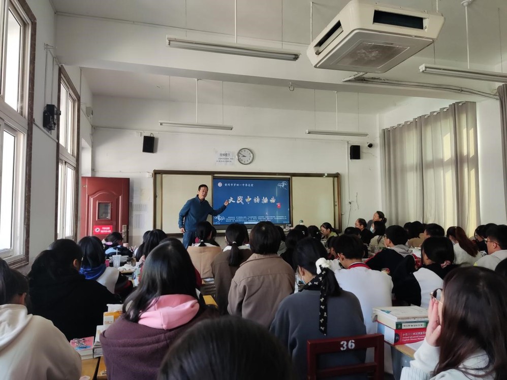 教研活动选定部编本高中语文选择性必修(上)第一单元聂荣臻的《大战中的插曲》。罗田一中李志宏老师上午第二节在二(1)班授课,他紧扣考纲与课程重点,循循善诱,引导学生自读文本,细读“信件”,由浅入深地感知聂荣臻的伟人形象以及人道主义精神。我院研究生梁佳敏上午第三节在二(6)班上课,她融合情感教学要素,引导学生走进文本,解读细节,提炼人物形象。