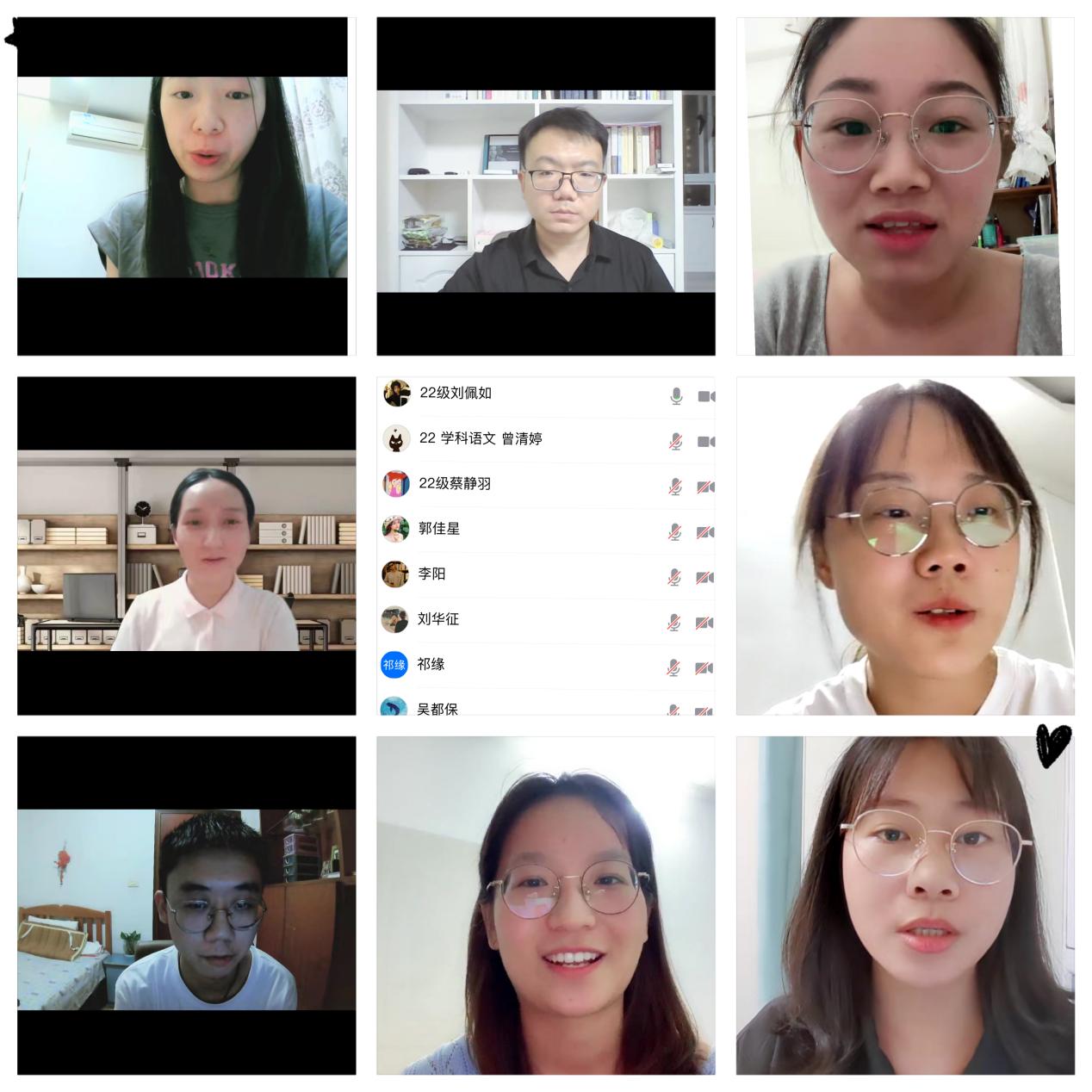随后,27位硕士研究生导师依次作了详尽的自我介绍,加深了2022级硕士新生对于导师的了解;54位硕士新生也随即自我介绍,谈到了个人情况和对未来研究生活的规划。victor1946部分未能到会的老师和同学也通过腾讯会议做了自我介绍和发言。