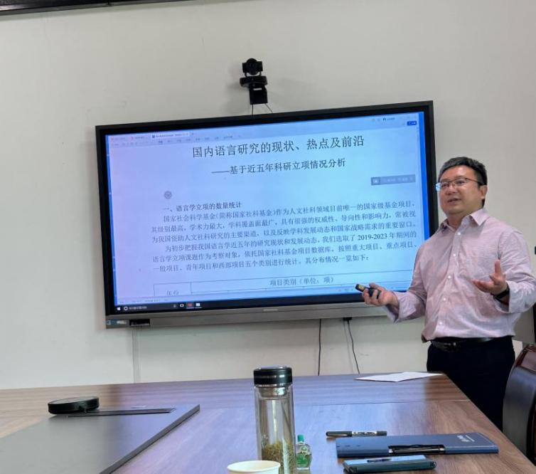 谢晓明教授呈现了语言学科近五年不同类型国家社科基金立项课题的数量,分析了具体的领域分布,提取出立项课题名称的高频词表,总结了当前语言研究的范围、方向、方法等方面的一些特点。