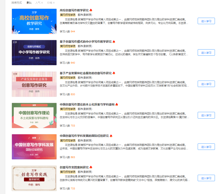 本次发布的资源包涵盖创意写作理论探索与实践应用双维度,包括《高校创意写作研究》《基于创意写作模式的中小学写作教学研究》《基于产业发展和社会服务的创意写作研究》等六个专题。内容既关注学科理论本土化建构与国际经验借鉴,又聚焦基础教育改革、文化产业服务等现实需求,为高校教学改革提供系统性资源支撑。