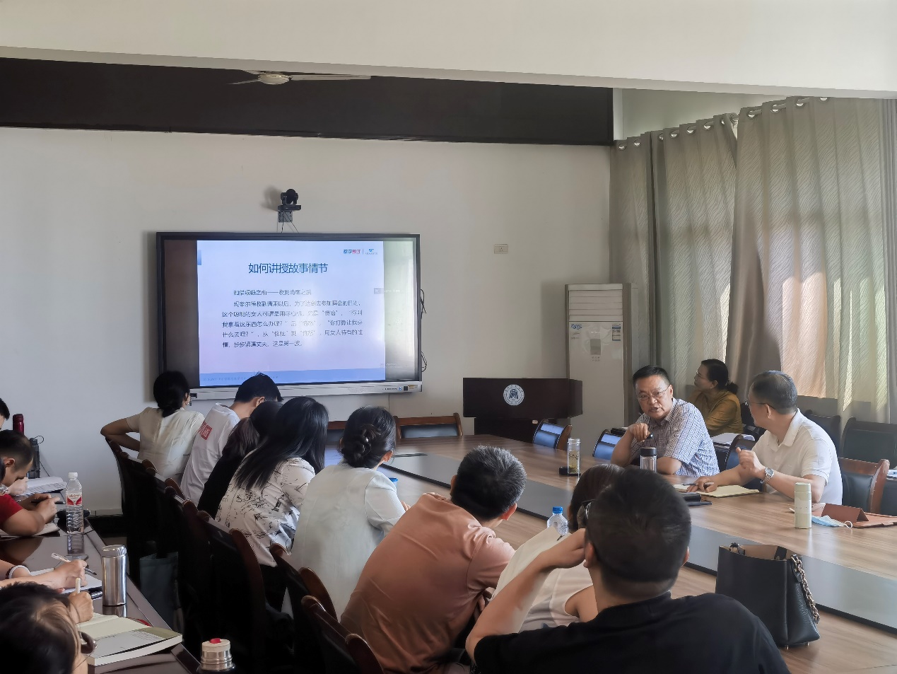 首先,何郁老师从中学教师与高校教师开展名著阅读或单篇阅读的方式差异说起,强调高校教师要在自身研究领域深耕,做到“专业激活”。他认为,高校教师相较于中学教师,有更广泛的专业知识、更先进的教学理念、更前沿的学术视角,因此可以从新旧教学方式与理论上入手,发现一线教学中存在的问题,并加以解决。何郁教授以“如何讲好故事情节”为例,详细阐述了小说、散文新旧教学理论的冲突,为如何结局这一问题展开演讲。