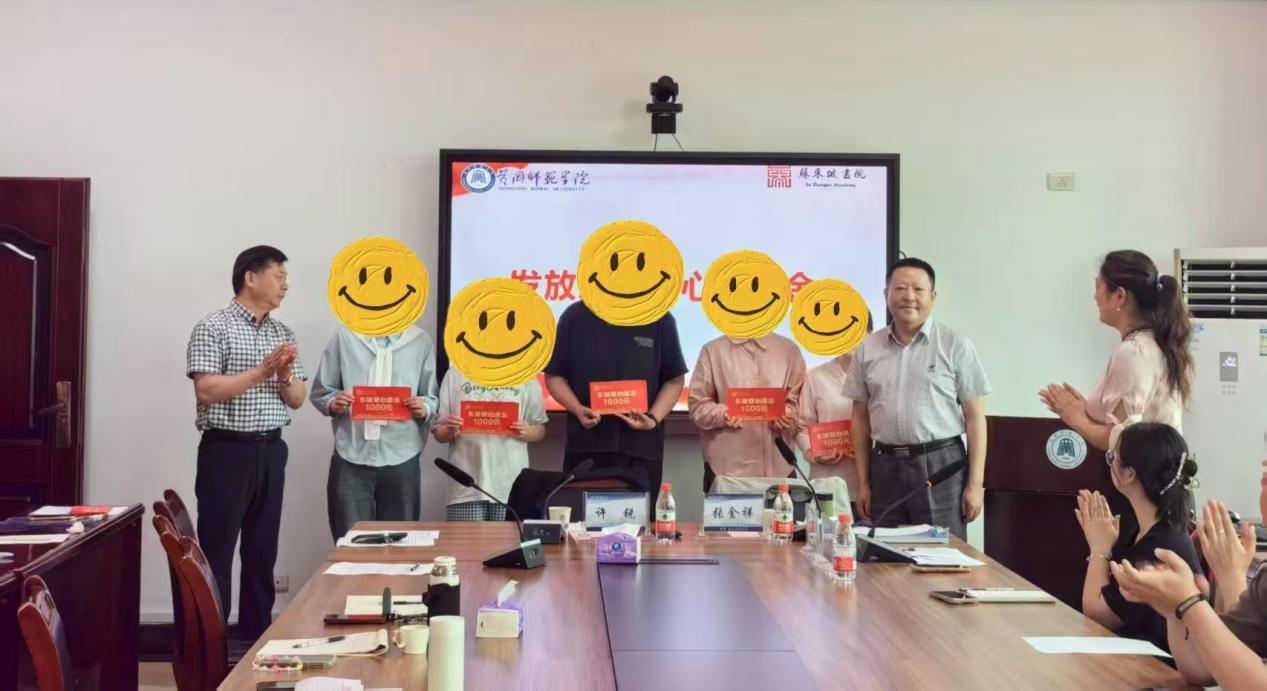 许锐、张金祥为受助学生发放爱心基金并鼓励同学们不要因一时的困难影响学业及个人发展。受助学生表达了对校友捐助的感恩之情,汇报了自己在学业中取得的成绩,并表示自己未来也一定会将这份温暖传递给需要的人。