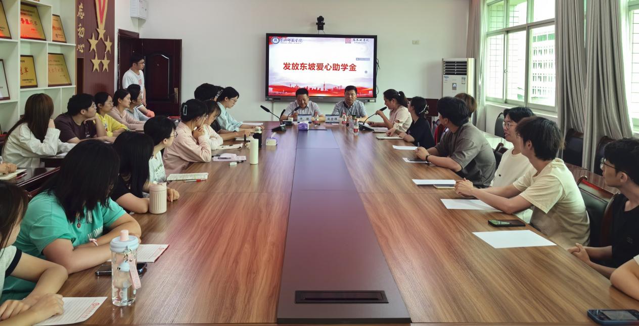 王艳艳介绍“东坡爱心基金”是由学院中文88级校友许锐、张金祥捐赠30万元创立,旨在传承东坡精神,资助特殊困难学生和家庭突发变故学生顺利完成学业。基金自创立以来,已累计发放金额24.4万元,受助学生147人。