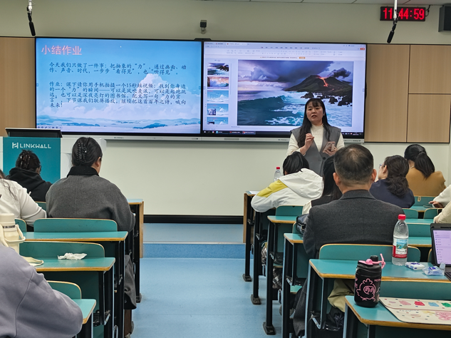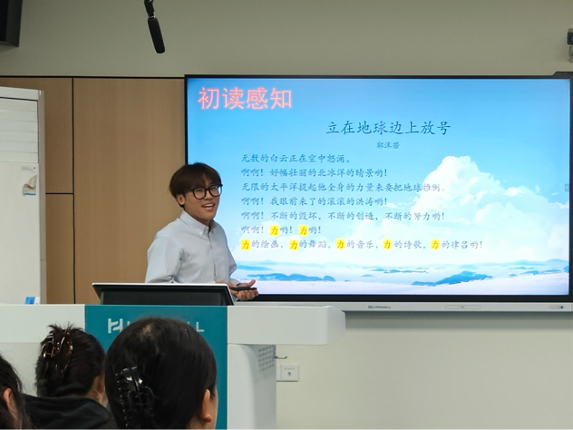 赛后,评委雷胜红老师对所有参赛选手的表现进行逐一点评。她首先充分肯定了选手们在比赛中展现出的突出优势:授课举止大方、感情充沛、声音洪亮,教学重难点把握精准,教学设计富有新意。同时,针对选手们在实践中的不足,提出了四点建设性指导意见:第一,要注重微课选点,建议精读文本,立足课本与学情;第二,要关注教学语言等教学细节;第三,要重视课堂师生互动;第四,建议进行教学反思,以复盘促提升,持续优化教学实践。雷老师的点评如同一盏明灯,不仅为参赛选手和在场的全体同学照亮了前进的道路,也为今后的教学实践提供了宝贵的参考和指导。