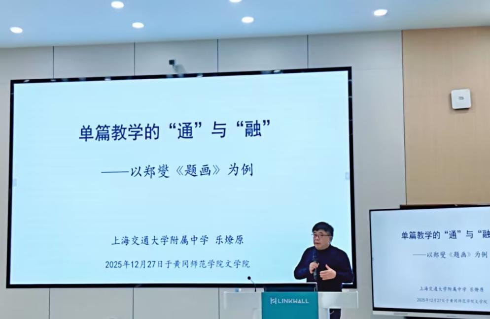 为进一步深化我院学生对语文单篇教学的本质认知,探索核心素养导向下的课堂创新实践路径,11月27日下午,我校杰出校友、国家“万人计划”教学名师、上海交通大学附属中学正高级教师乐燎原应邀回校,在北校区图书馆二楼报告厅作“单篇教学的‘通’与‘融’——以郑燮《题画》为例”专题讲座。本次讲座由伟德国际victor1946副院长何荣誉主持,汤天勇教授以及2025级学科教学(语文)教育硕士研究生、部分本科生及教师代表参与并聆听讲座。