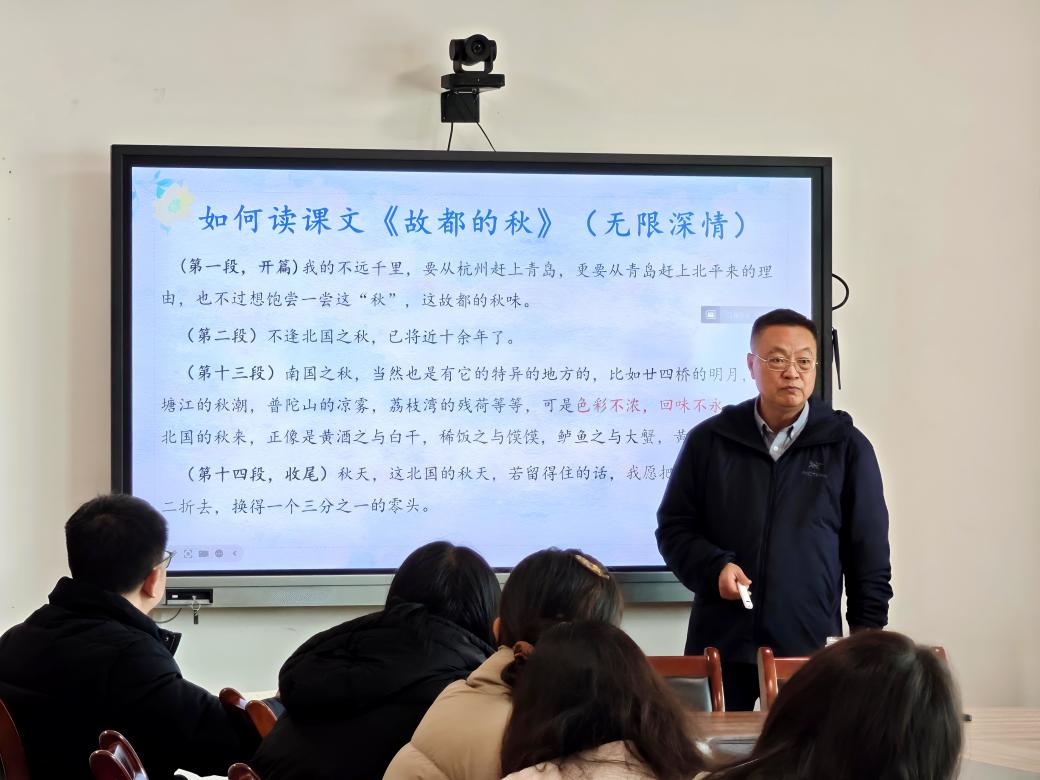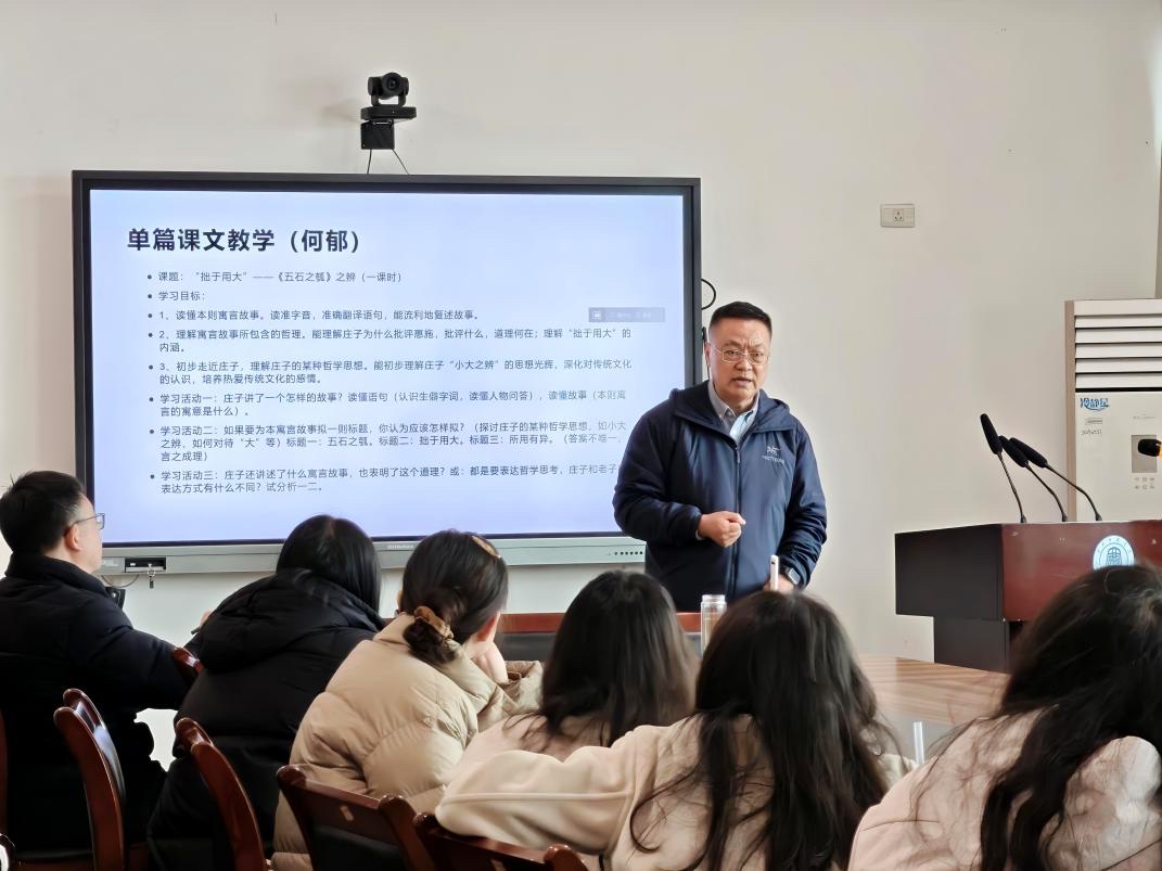 讲座伊始,何郁老师结合自身深耕教学一线的研究经验,围绕文本解读与语文教学设计的核心要义,为同学们分享了兼具实用性与指导性的专业方法与实践路径。他指出,文本解读能力是语文学科的根基,直接决定课堂教学的深度与质量,唯有持续深耕文本、反复研读揣摩,方能精准把握文本的核心内涵。