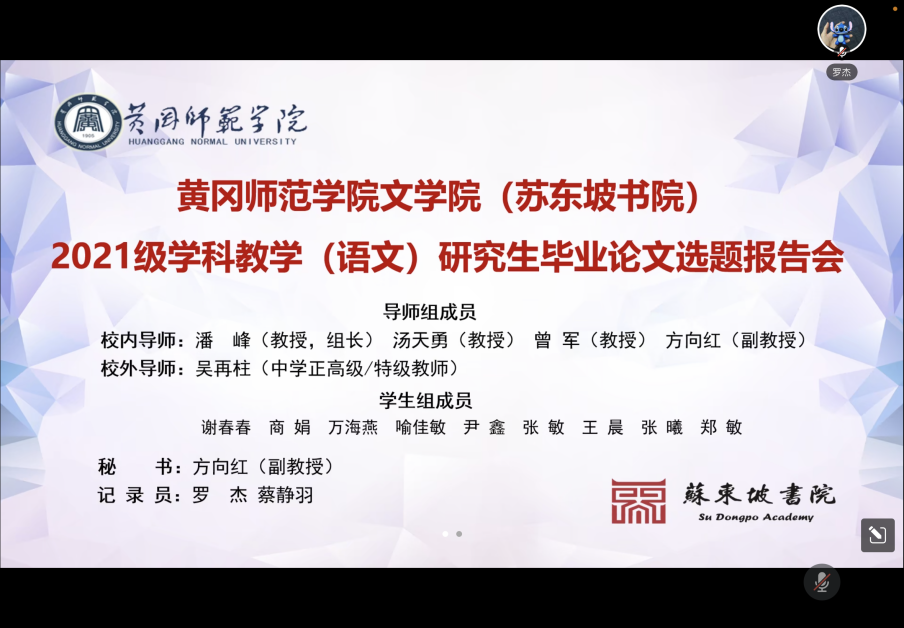 为进一步提高研究生培养质量和学位论文写作水平,伟德国际victor19462022年12月4日晚7点,在腾讯会议举办2021级学科教学(语文)研究生毕业论文选题报告会。此次会议由2021级学科教学(语文)领域全体研究生作线上选题汇报。