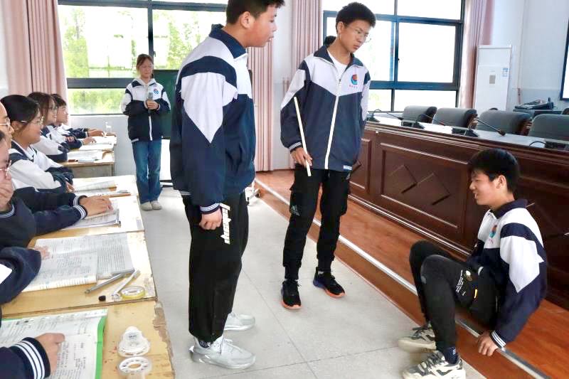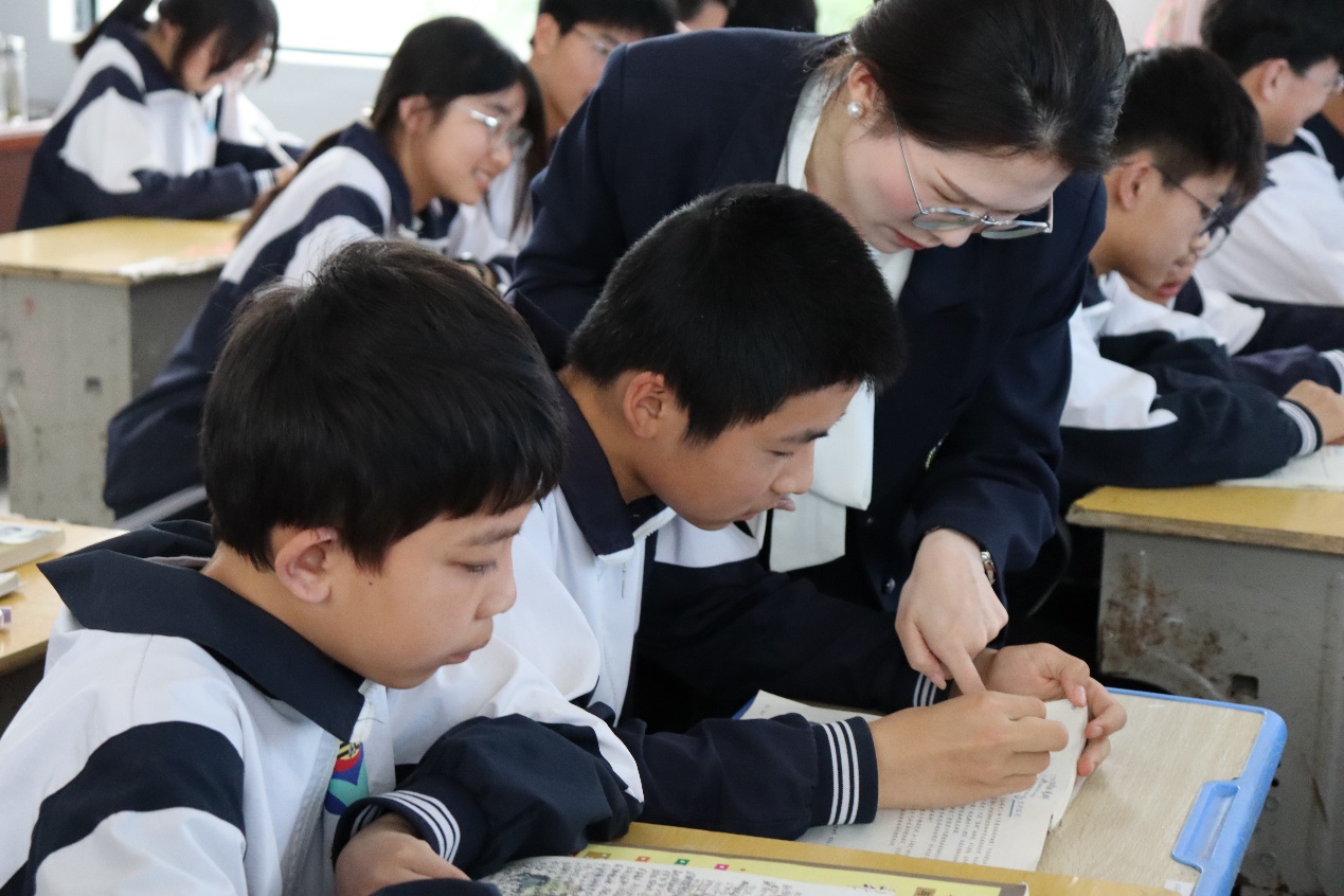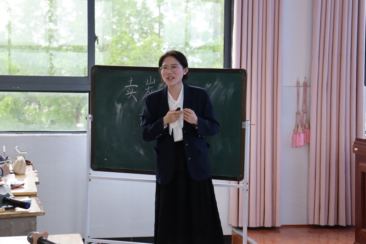 之后由左逸昕同学进行授课。她围绕“怎一个‘充’字了得”,以“卖炭翁的劳动价值”为切入点,通过带领学生分析卖炭翁“烧炭”“运炭”“卖炭”的艰苦劳作,使学生明确“千斤炭”与“半匹红纱一丈绫”的价值不对等。与此同时,她以视频的方式补充诗文写作背景,带领学生追根溯源,并结合文本与拓展资料,深入体会作者“忧国忧民”的思想情感。整个授课环节精彩纷呈、声情并茂,将“读”融入教学全过程,以学生为主体,努力让学生“动”起来,让课堂“活”起来。