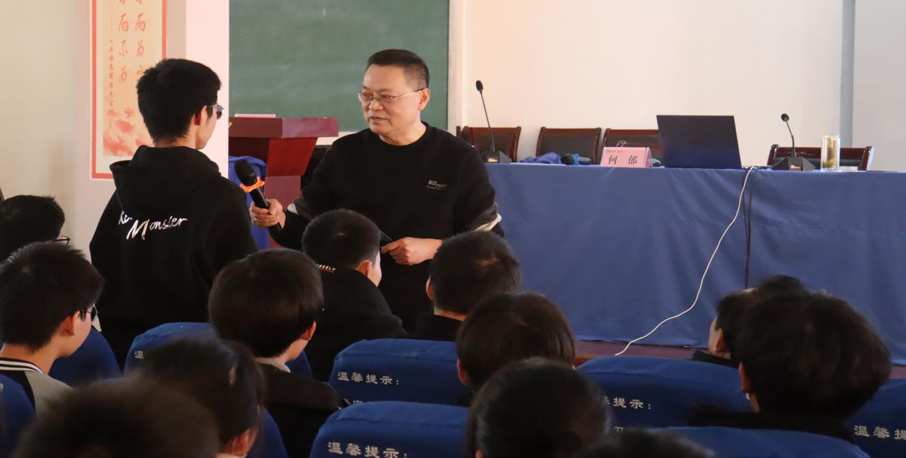 下午一点半,何郁老师作了题为“谈谈怎样写好高考作文”的专题讲座。现场座无虚席,学术氛围浓烈。首先,何老师以独具亲和力的提问方式,抛出“为什么要写作”这一问题。同学们从论点、逻辑、思想等方面进行阐释,发言踊跃。其次,他以经典文本为例,阐述了写作时有效阐述自己观点的几个方法,如先叙述再议论、开门见山等。最后,为培养学生的批判性思维,他以“药家鑫事件”为切入点,讲述了例子在议论文中的作用。他强调,写作一定要有典型事例,而且要将典例和范例相结合,学会运用类比和比喻的手法,深入分析典例。